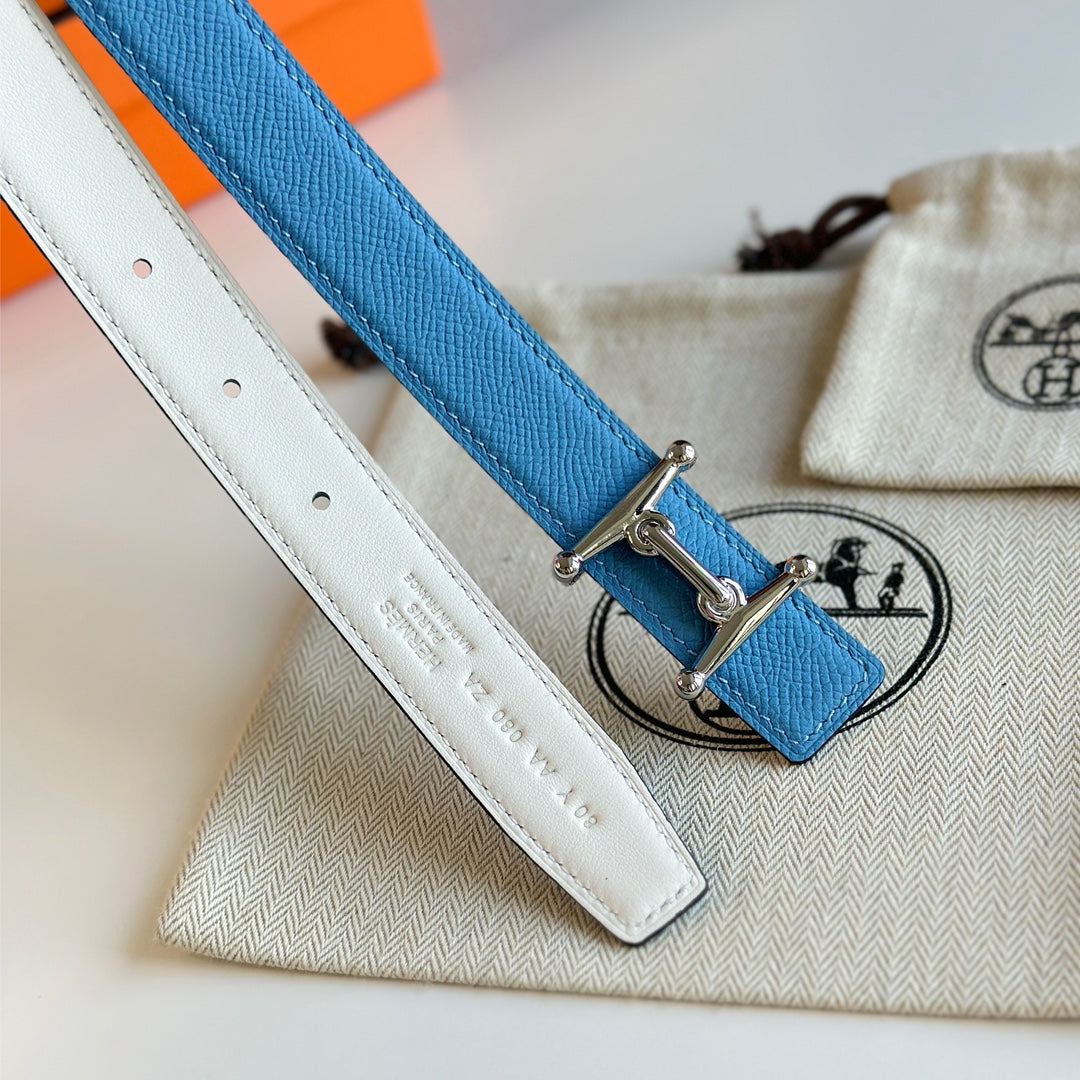 HM Silver Mors H buckle & Reversible 24 mm belt Blue White leather 125360