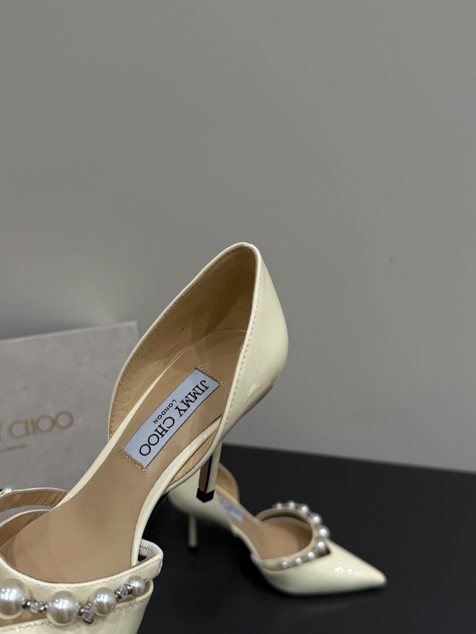 Jimmy Aureli Pearl-embellished Pumps 65mm White Patent Leather 420137
