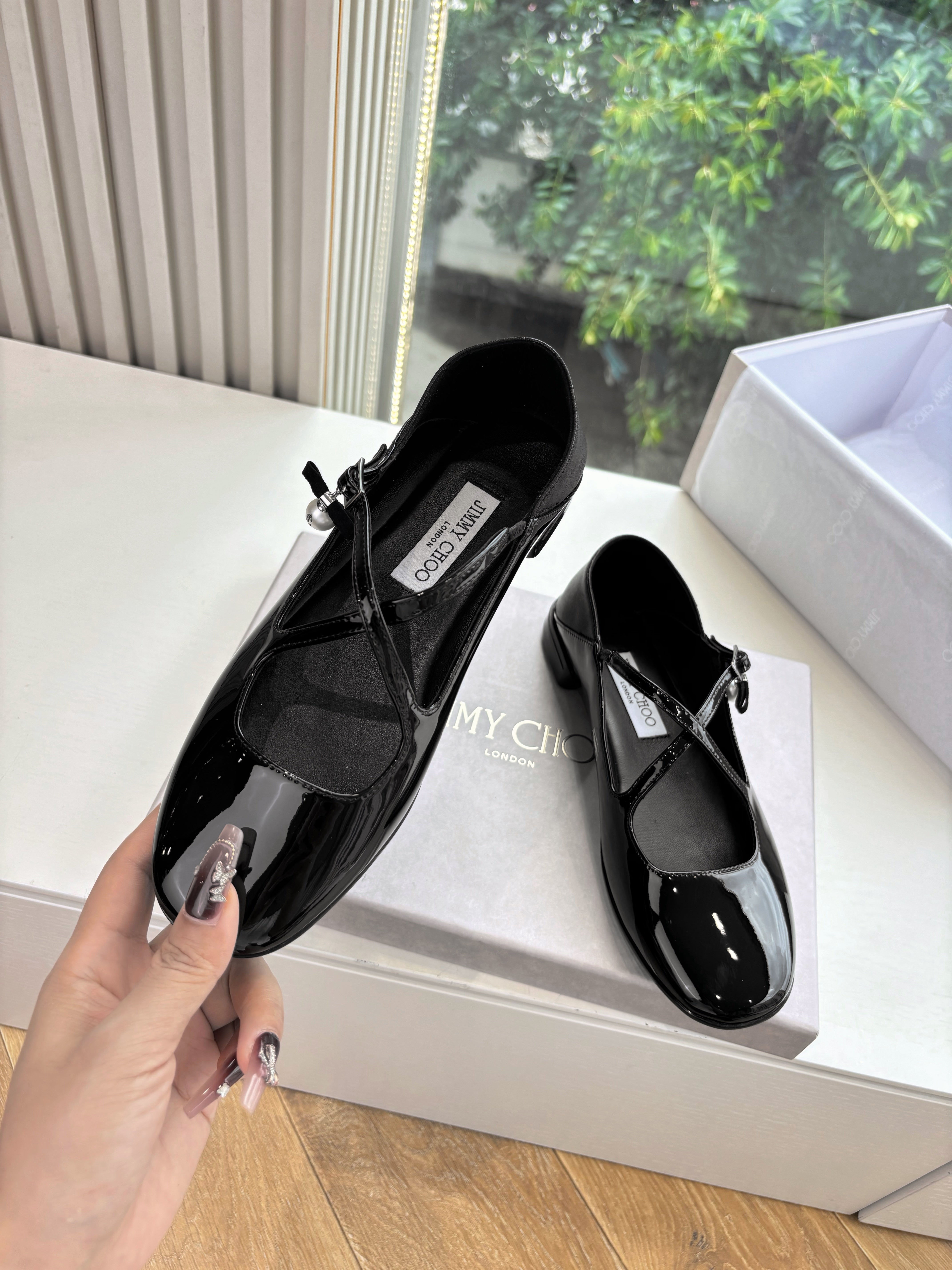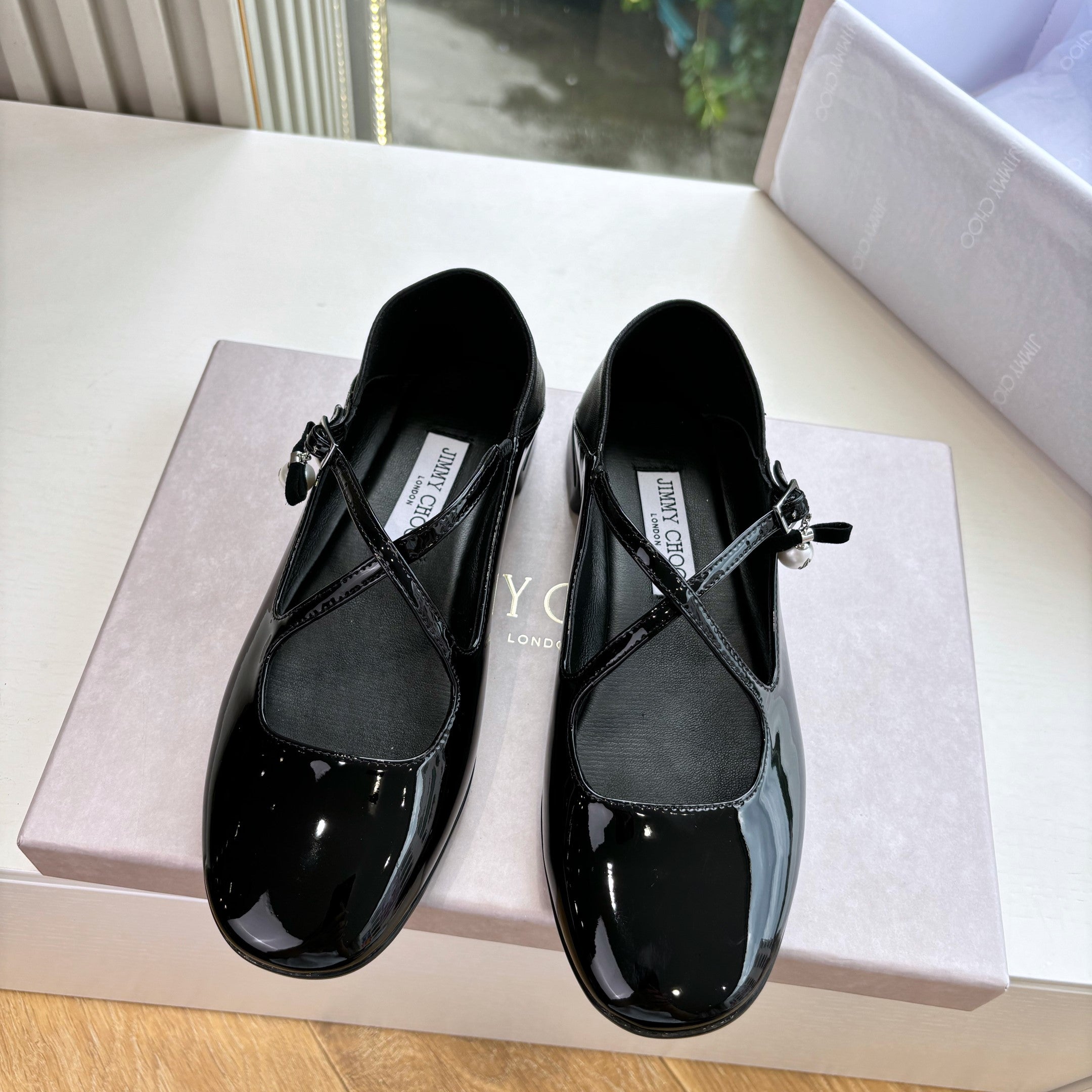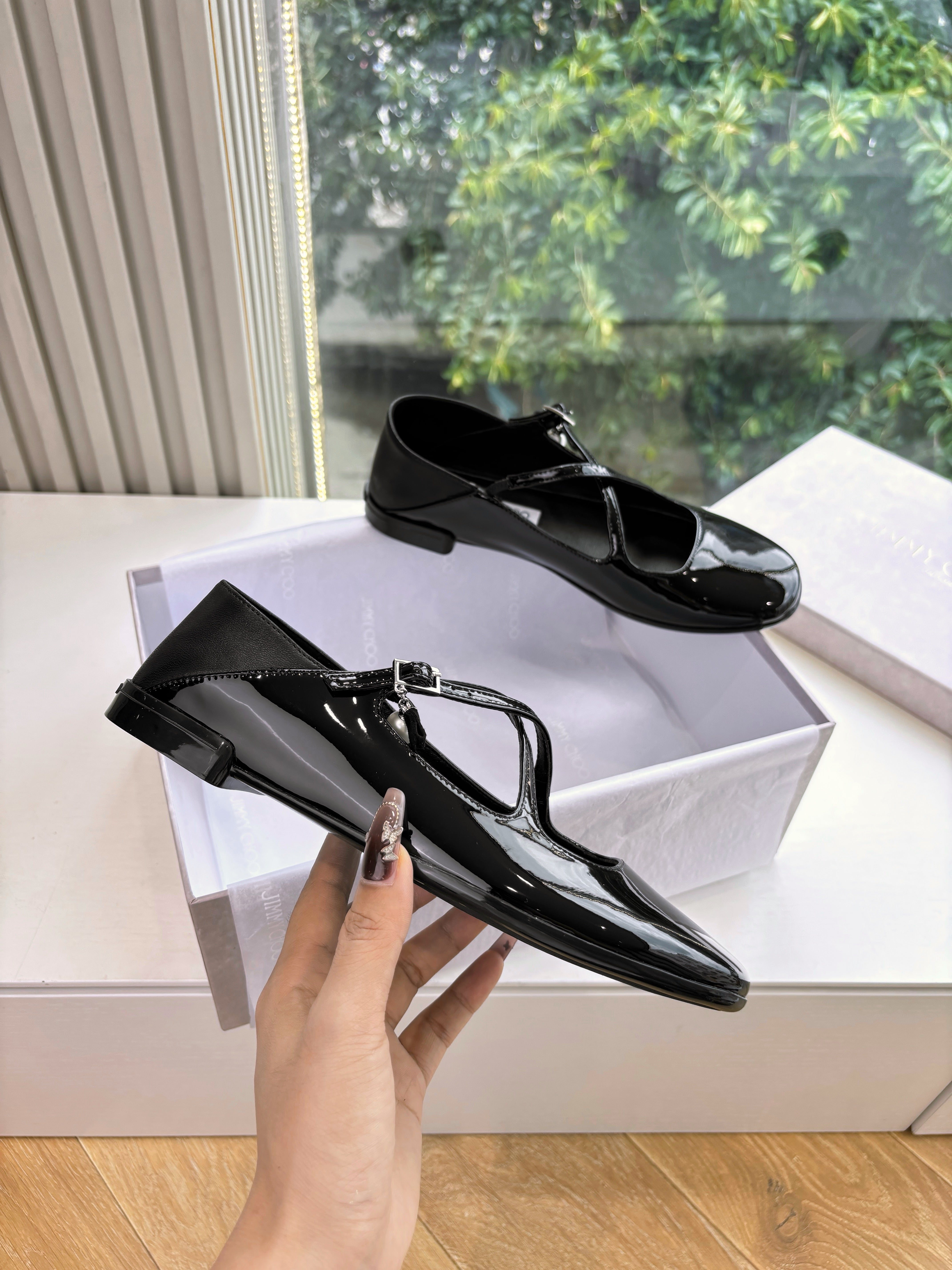 Jimmy Eleri Ballerina Shoes Black Patent Leather 430574