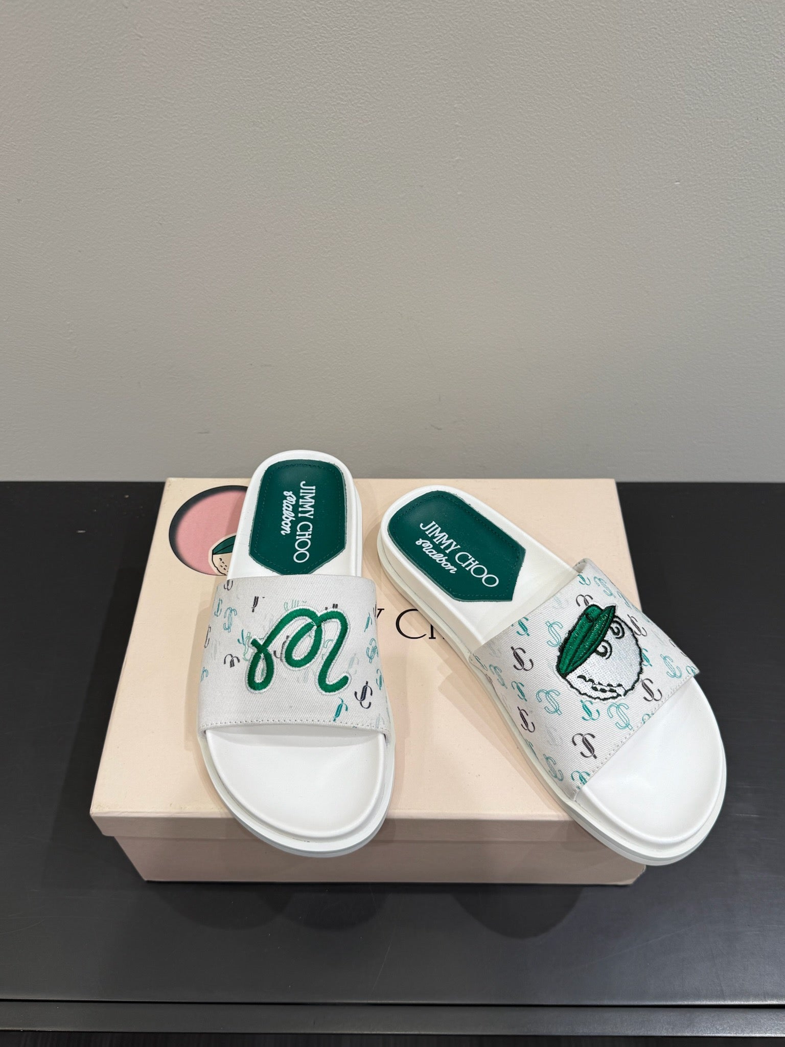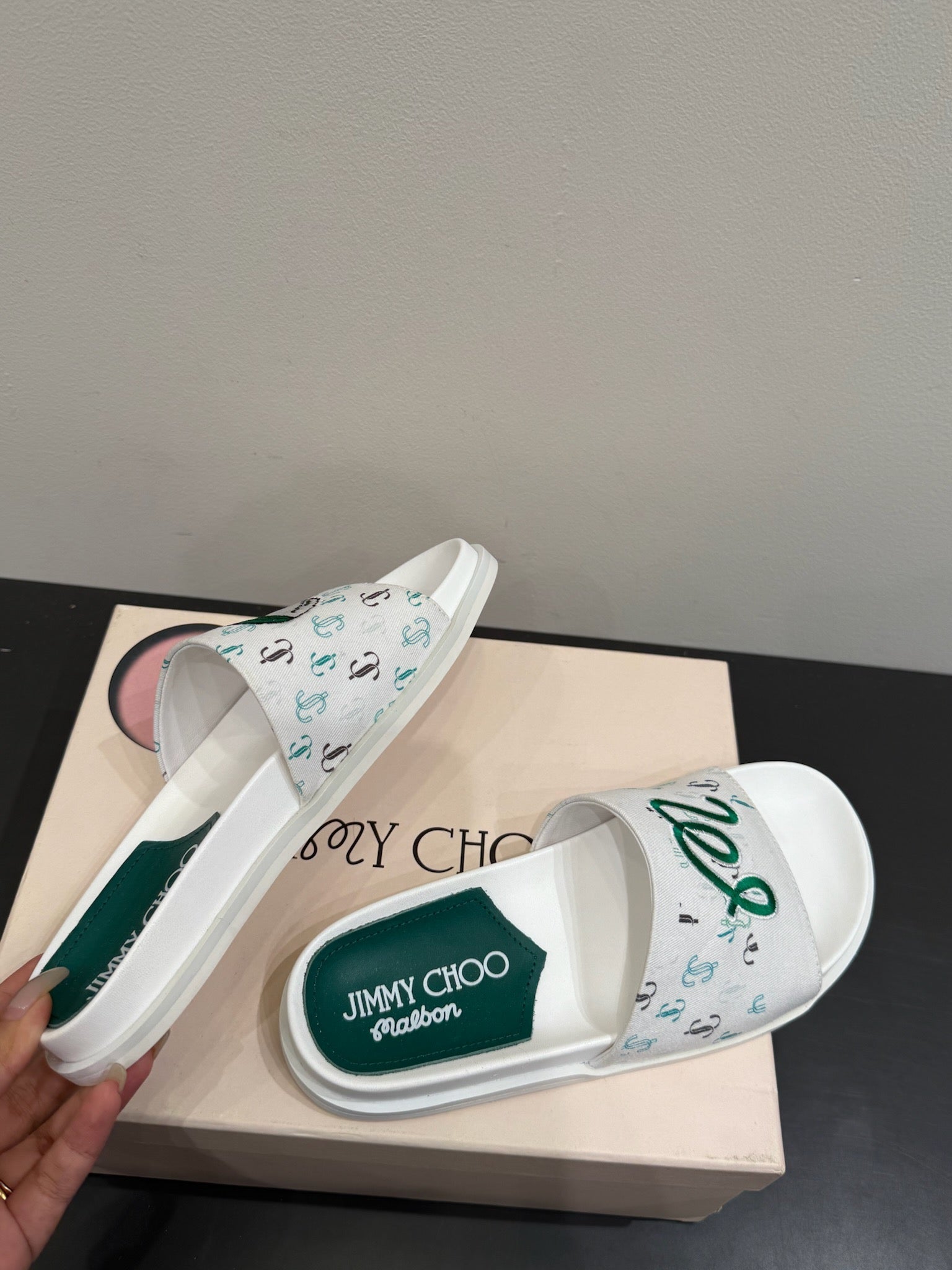 Jimmy Malbon 2.0 Slide Green White Monogram Jacquard 420148