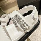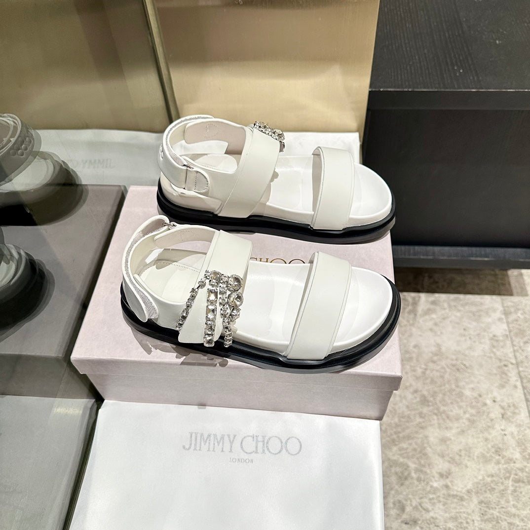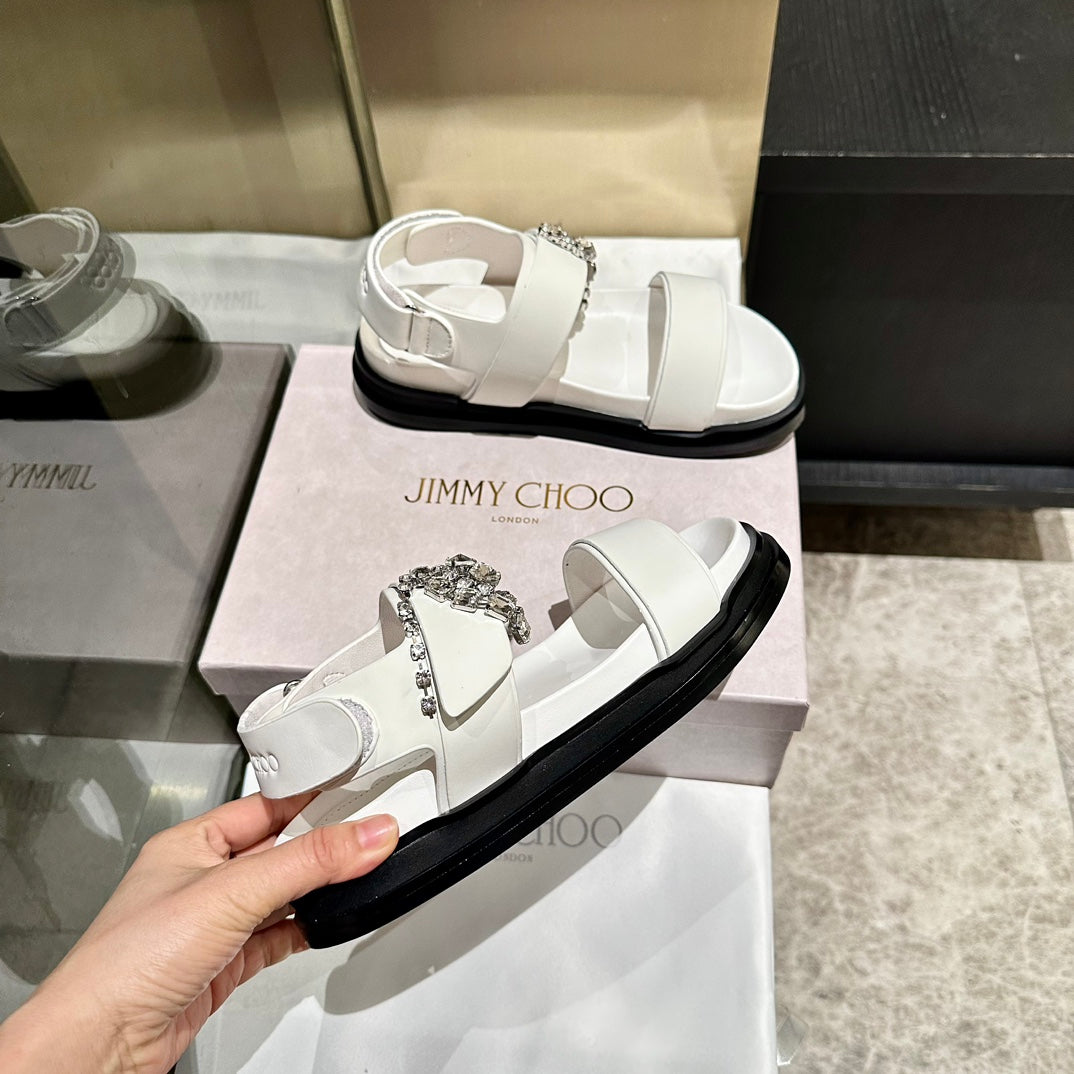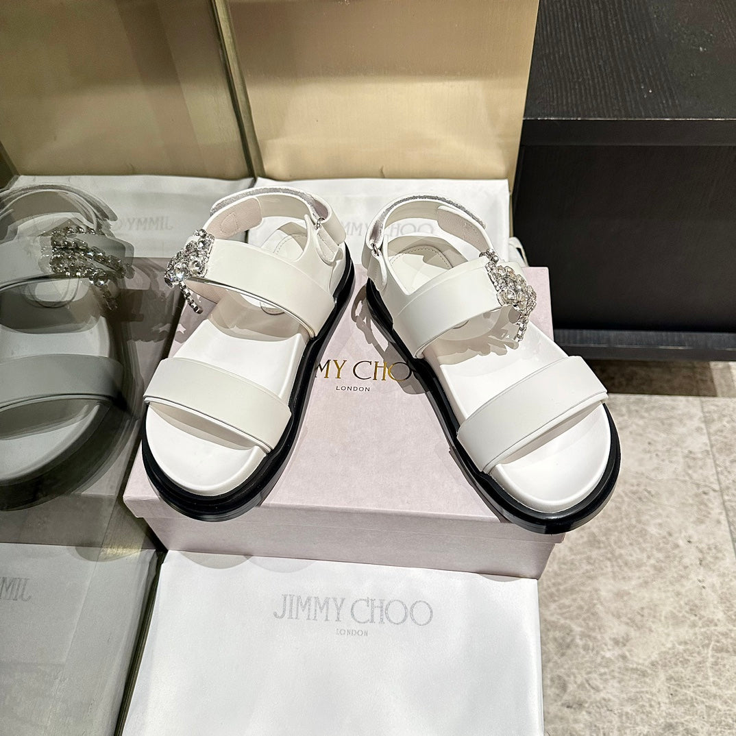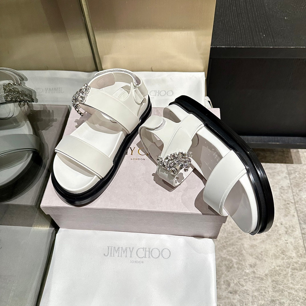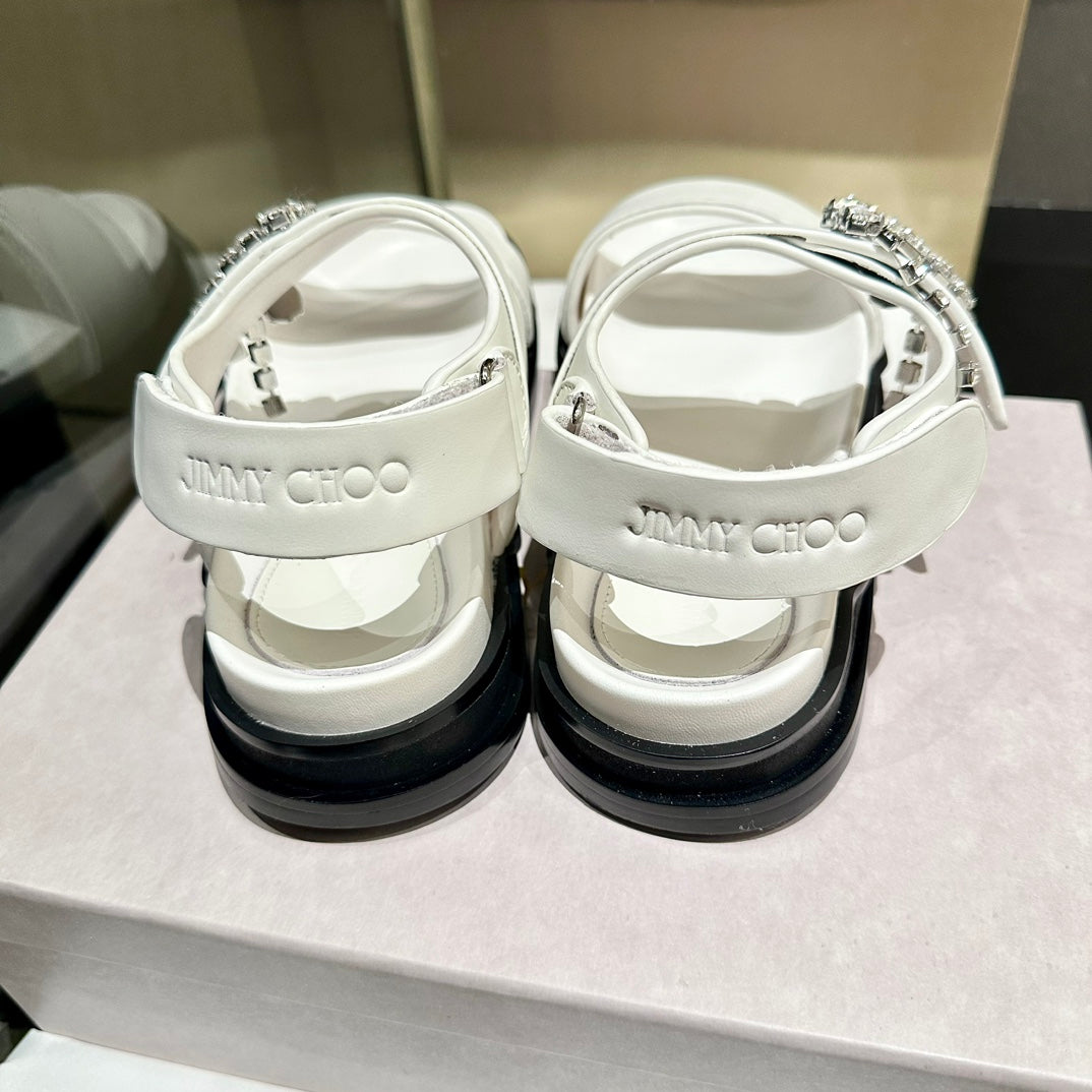 Jimmy Rhinestone Verity Sandals White Leather 326425