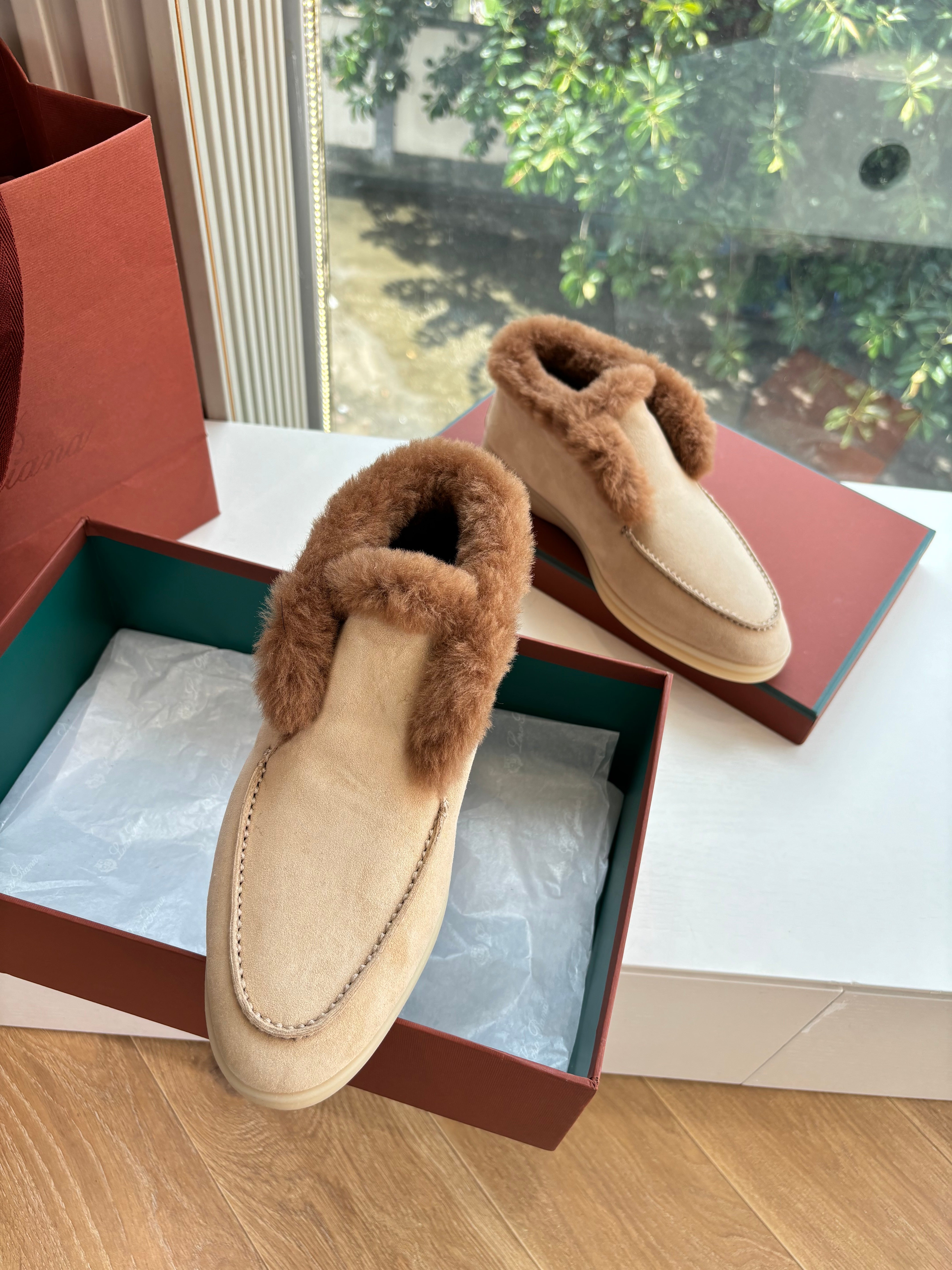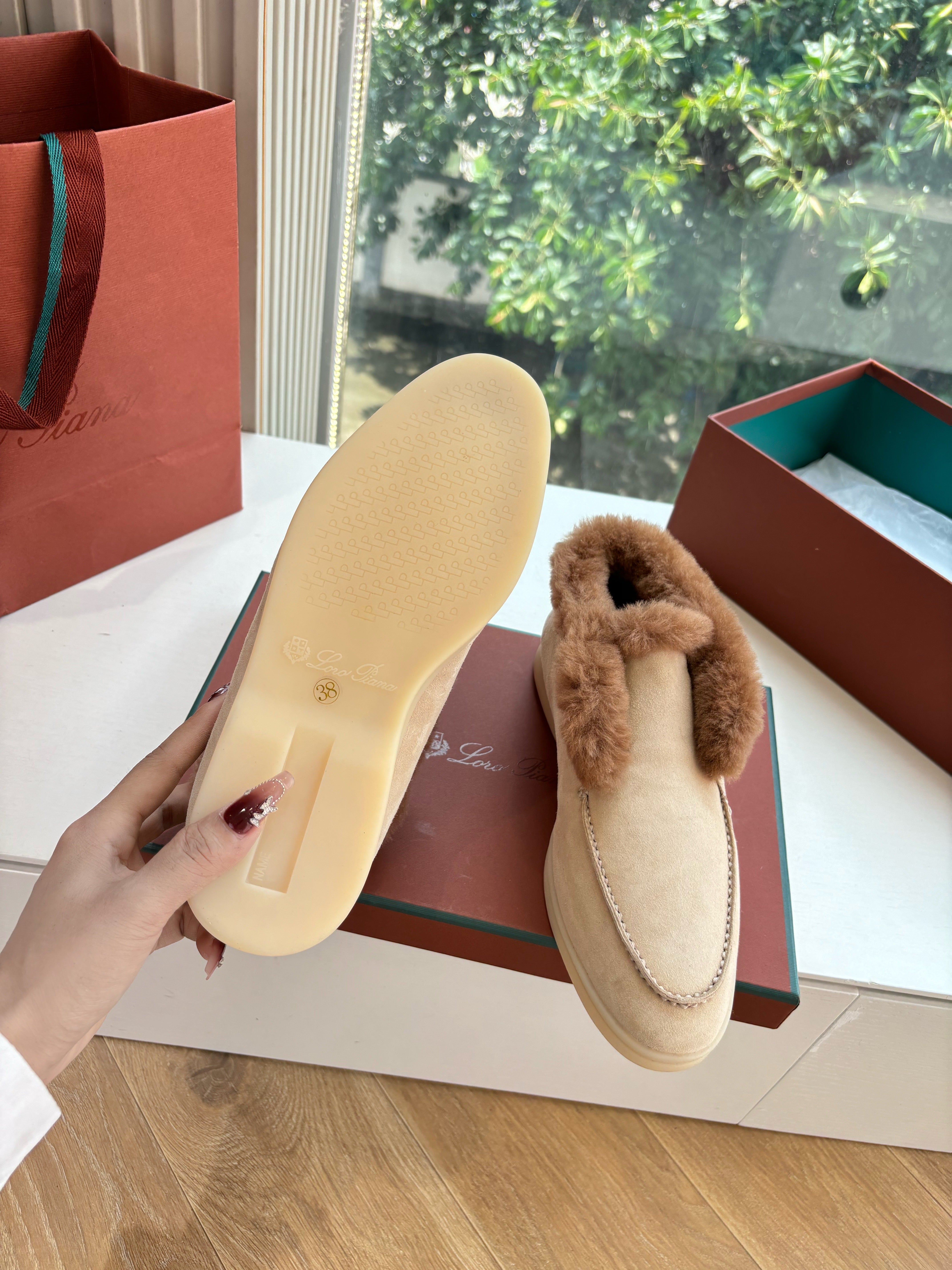 LP Open Walk Ankle Boot Light Beige Brown Fur Suede 507421