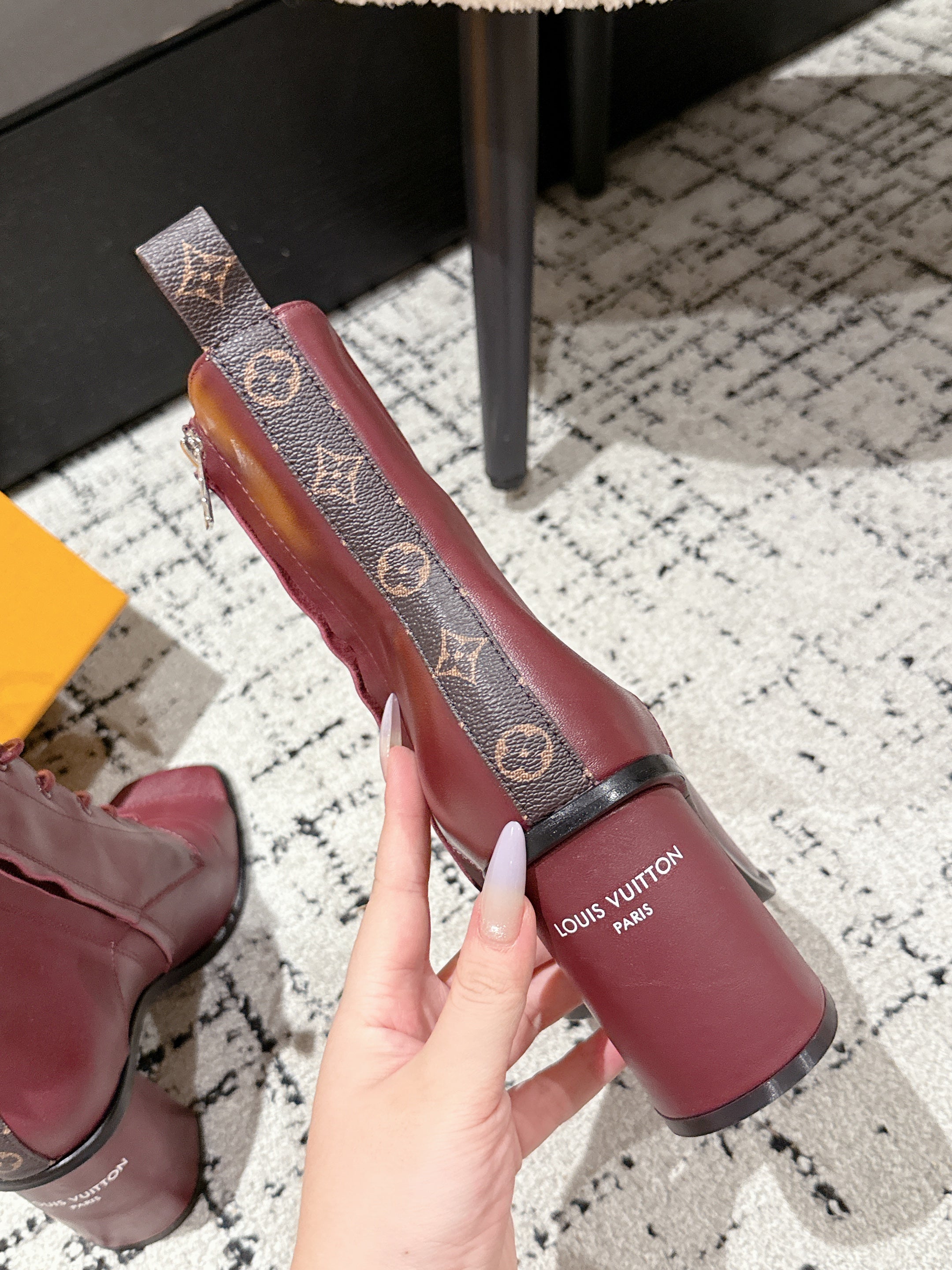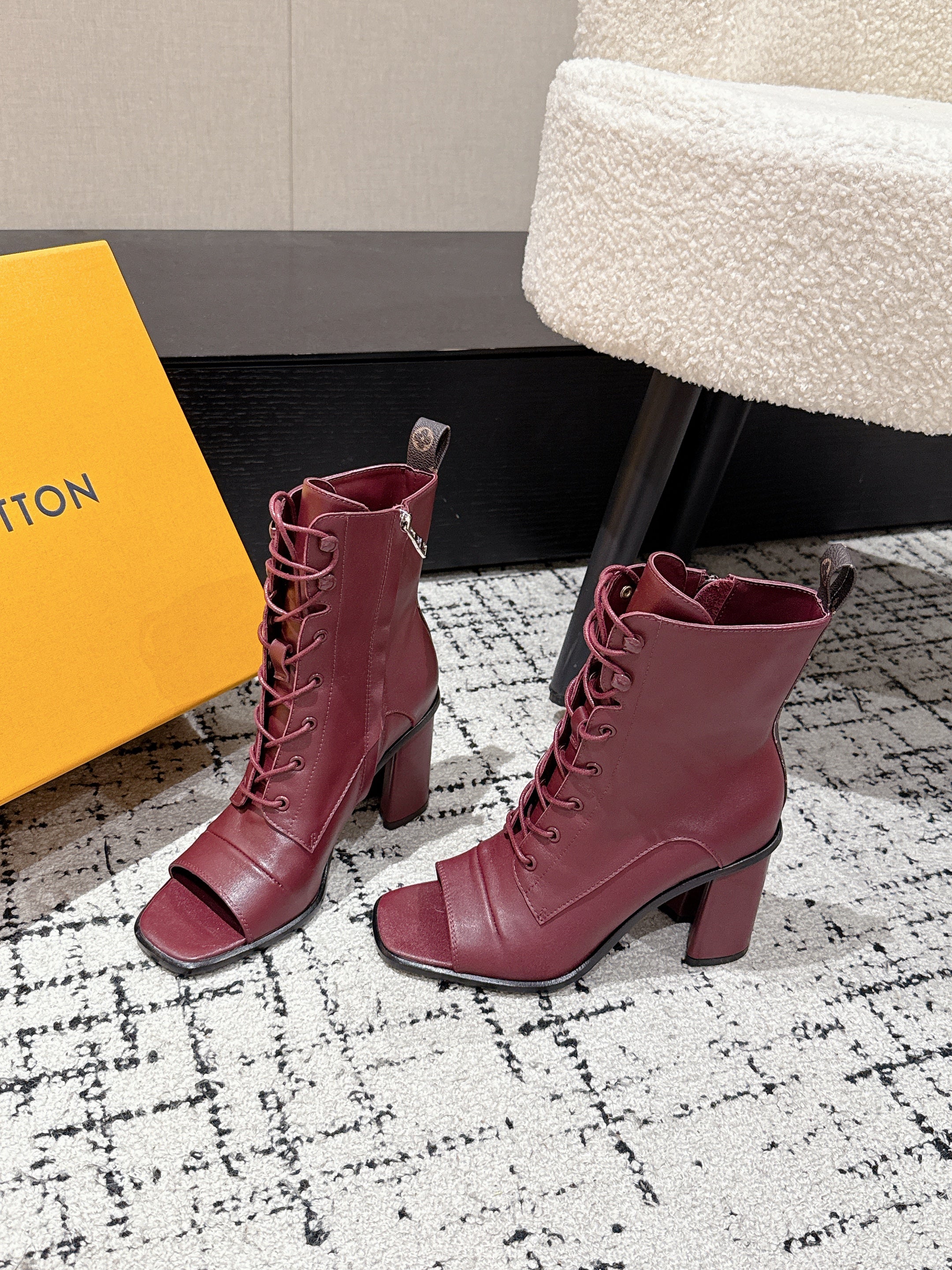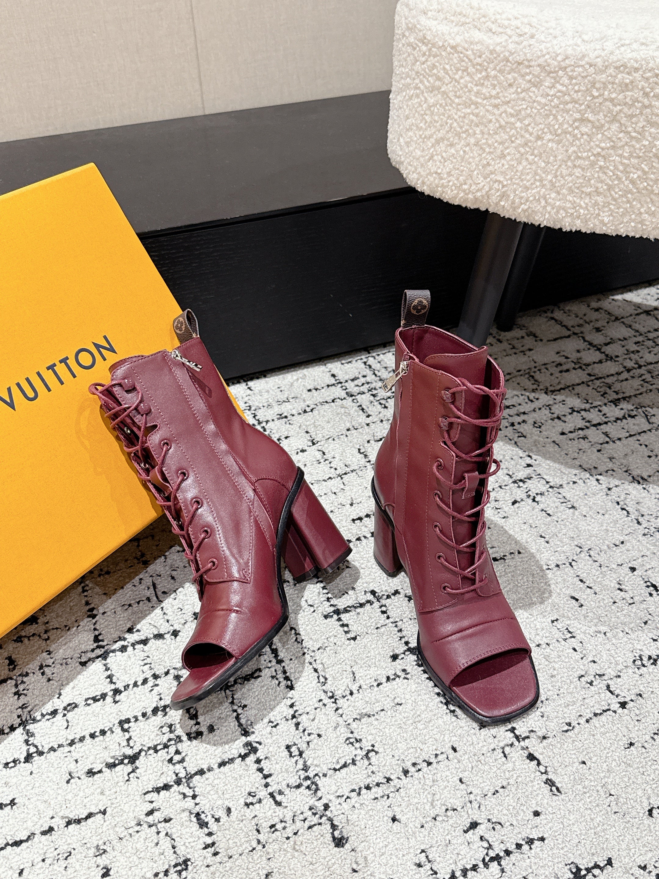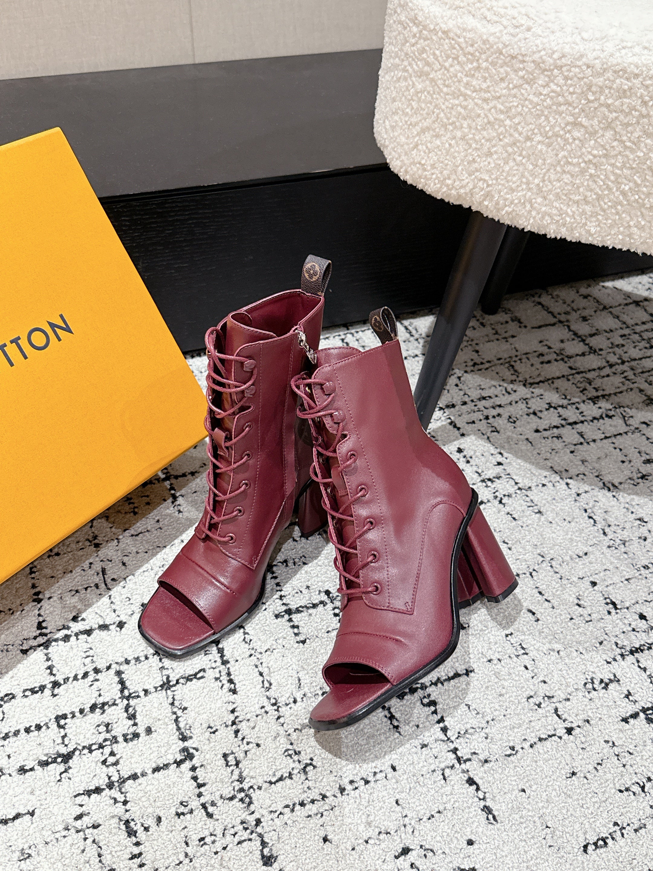 LV Berlin Boots 85mm Ecru Burgundy Smooth Calfskin 514456