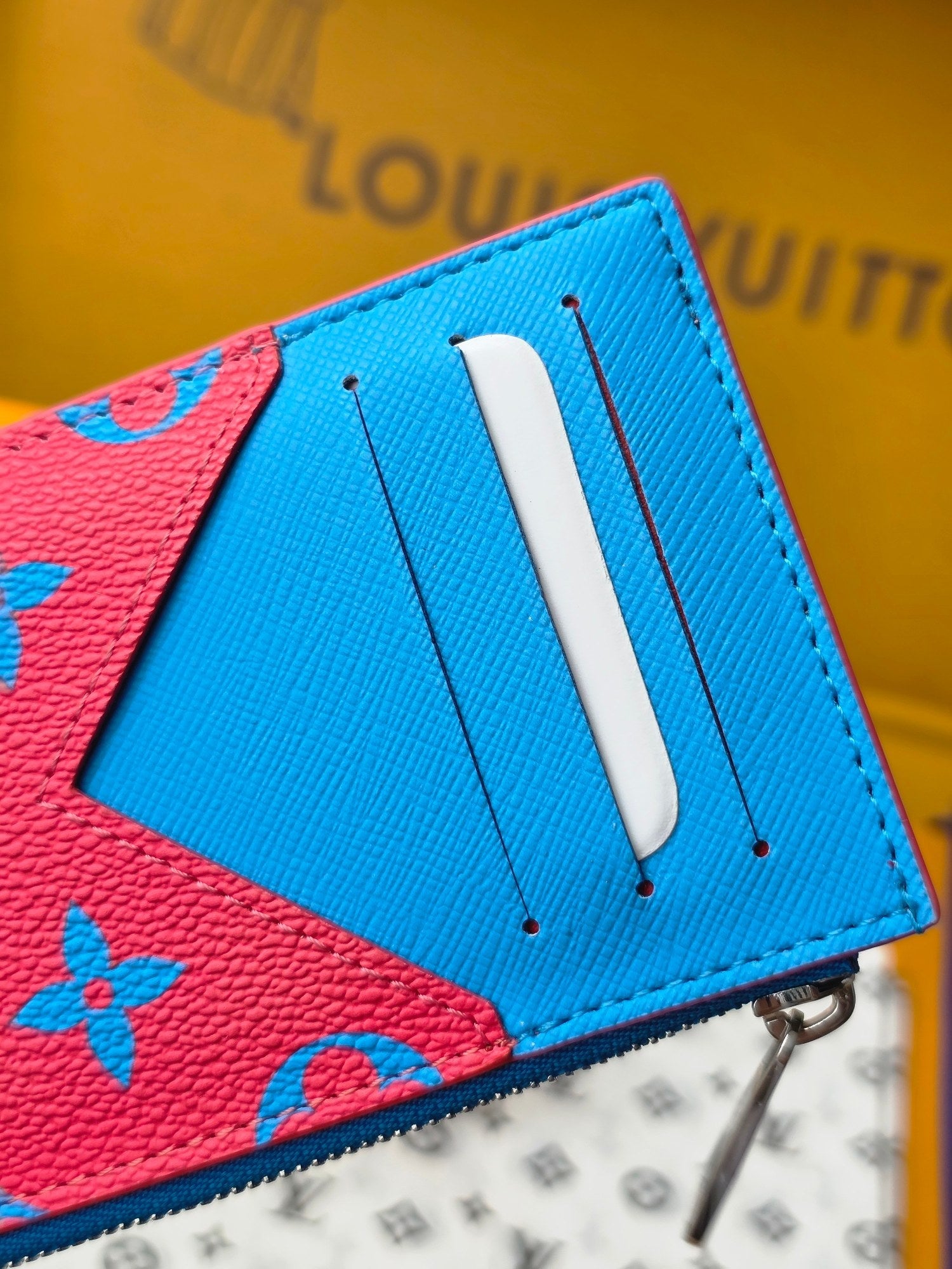LV M14762 Coin Card Holder Blue Red Monogram Glow Canvas & Cowhide