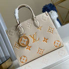 LV ONTHEGO MM 35 CREAM COWHIDE-LEATHER TRIM