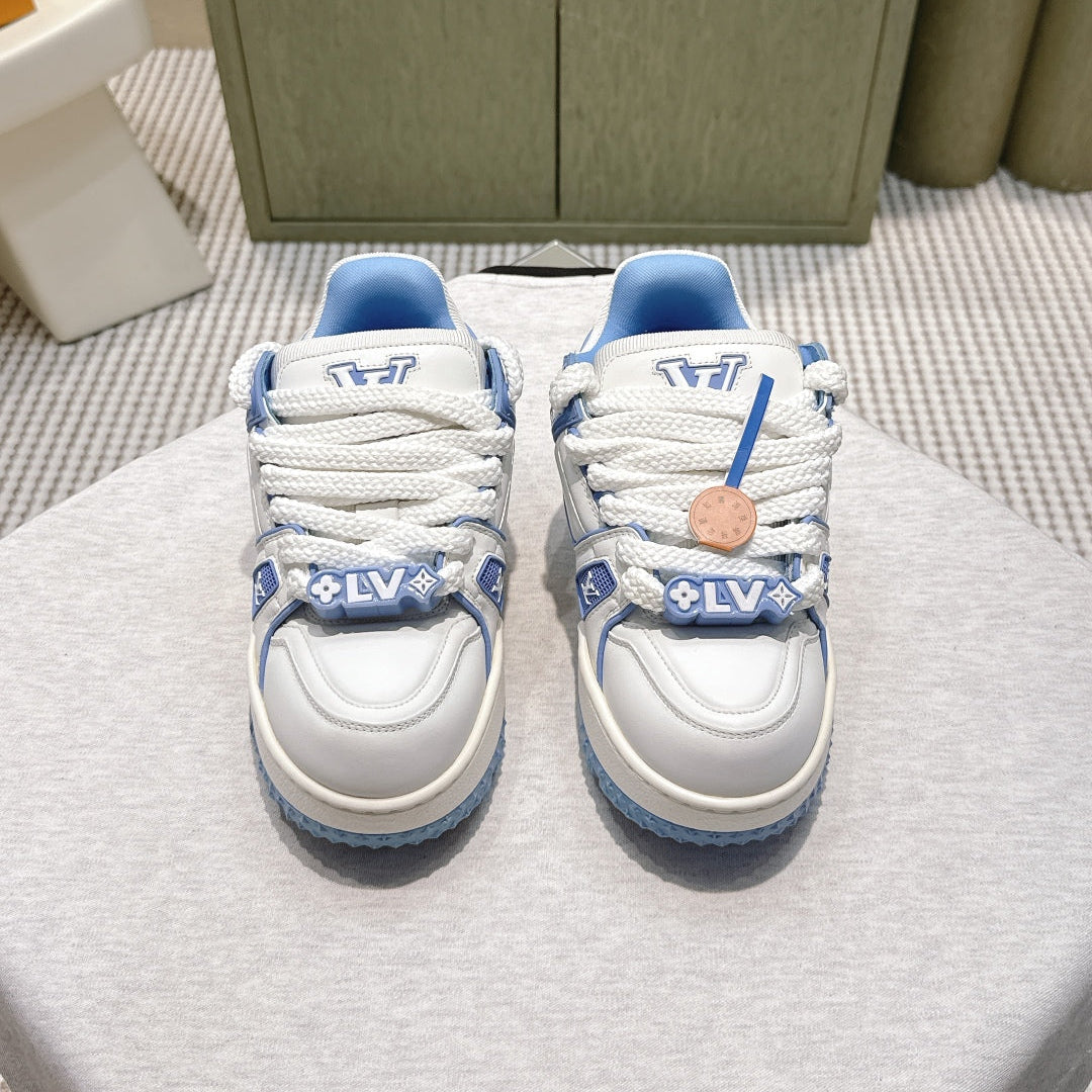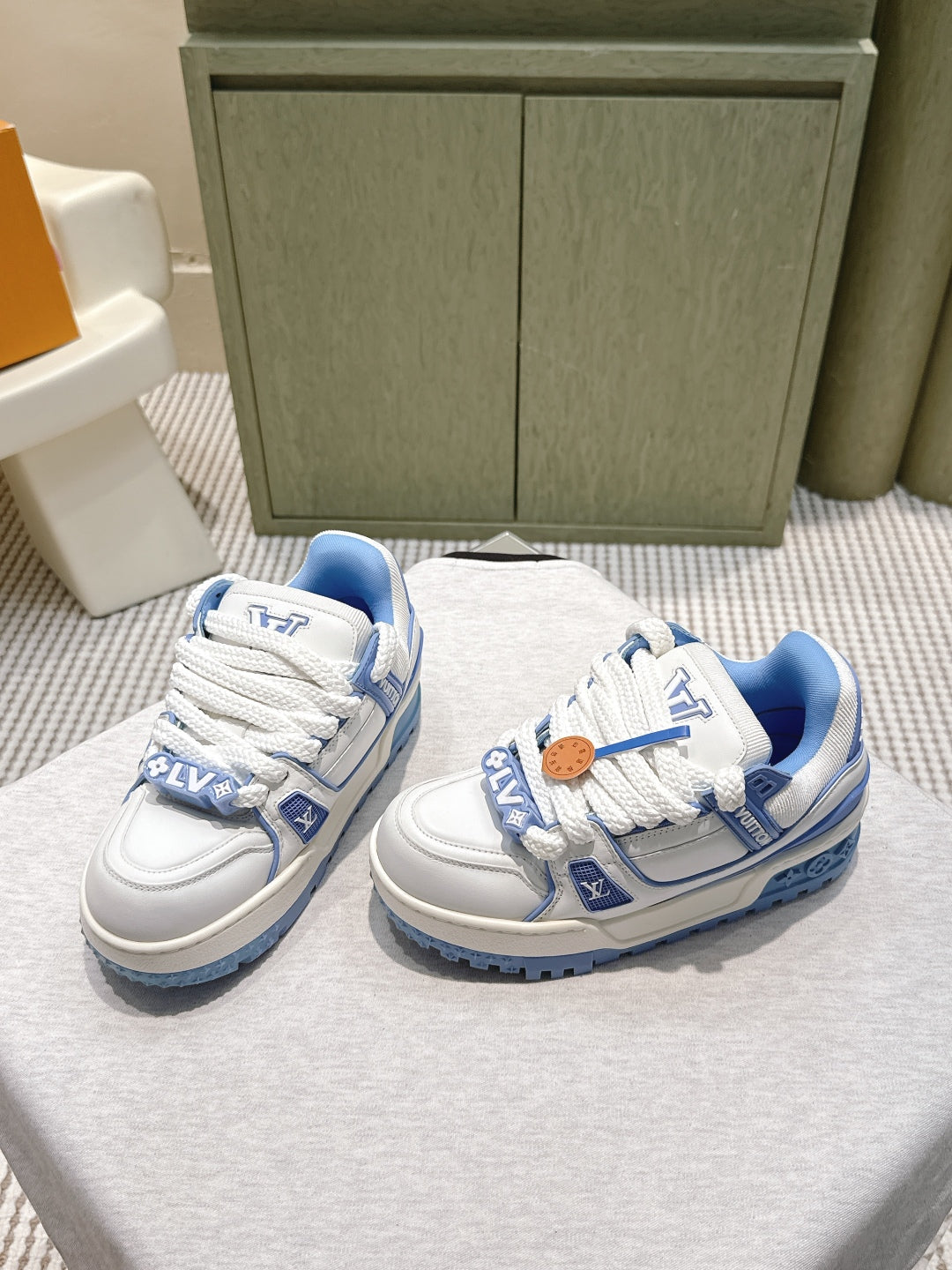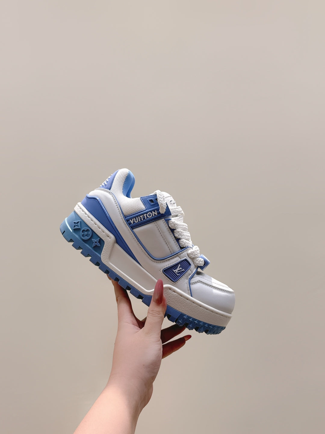 LV Trainer Maxi Sneakers White and Blue Calfskin Mesh 515200