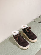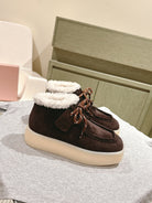 Miu Ankle Boots Brown Earth Fleece Lining Suede