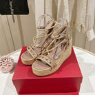 Rockstud Flatform Sandal 10mm In Beige Mix Rosy Brown Calfskin And Nylon Rope 829394