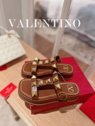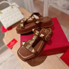 ROCKSTUD PLATFORM SANDALS MULE IN BRONZE BROWN CALFSKIN
