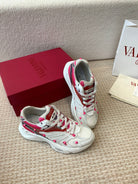 Valentino Sneaker 50mm In White Mix Red Pink Mesh Fabric And Cowhide 814276