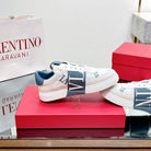 VL7N LOW-TOP WHITE CALFSKIN AND AEGEAN BLUE FABRIC SNEAKER WITH BANDS