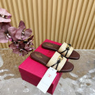 VLogo Raffia-Trimmed Leather Slides In Brown Chocolate Mix Beige Sedge Weaving Yarn And Lambskin 102813