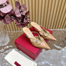 Vlogo Signature with Crystals Cut-Out Slingback Pump 70 Beige Calfskin