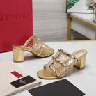 WOMEN'S BLACK ROCKSTUD GOLD MESH SLIDER SANDAL WITH MATCHING STUDS 65 MM